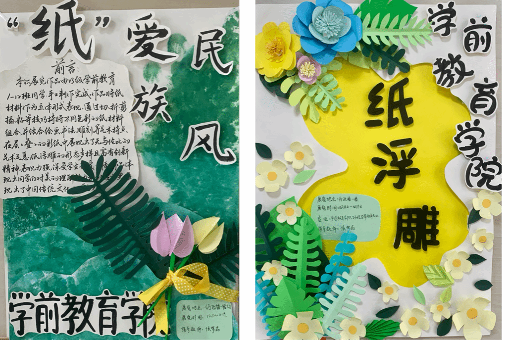 本次民族风纸浮雕展览让我们感受到了纸雕艺术的独特魅力和深厚文化底蕴。纸雕艺术作为非物质文化遗产的一部分,它不仅是历史的见证者,更是文化的传承者。随着科技的发展和人们审美观念的变化,纸雕艺术也在不断创新和发展。此次展览同学们尝试将现代元素融入纸雕作品中,希望能够激发更多人对纸雕艺术的兴趣和热情,了解并爱上这一艺术形式。