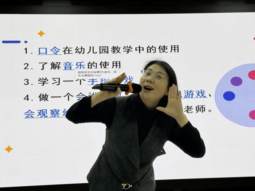 王老师指出,实习是学生向教师角色转变的关键阶段,需通过观察、参与和反思实现专业成长。她以案例大树小朋友的成长为例,强调教师应通过鼓励与个性化支持促进幼儿发展,并引用叶圣陶“生活即教育”理念,说明习惯养成的重要性。王老师还结合健康、语言、社会等五大领域教学案例详细讲解了如何设计符合幼儿年龄特点的活动,并现场演示了手指游戏和儿歌教学技巧。
