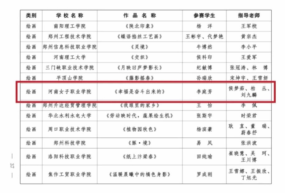 绘画作品《幸福是奋斗出来的》荣获绘画类三等奖